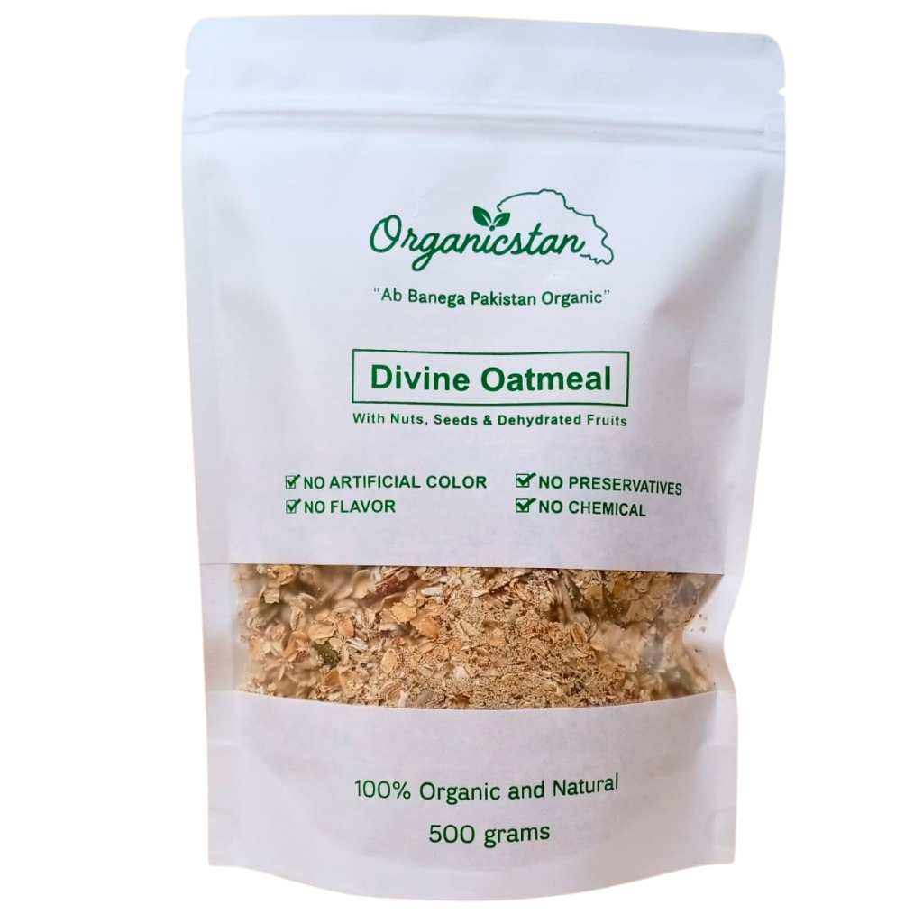 A premium blend of roasted whole grain oats, crunchy nuts, seeds, sweet date powder, and dehydrated fruits – 100% natural, nutrient-packed fuel for sustained energy and daily wellness.